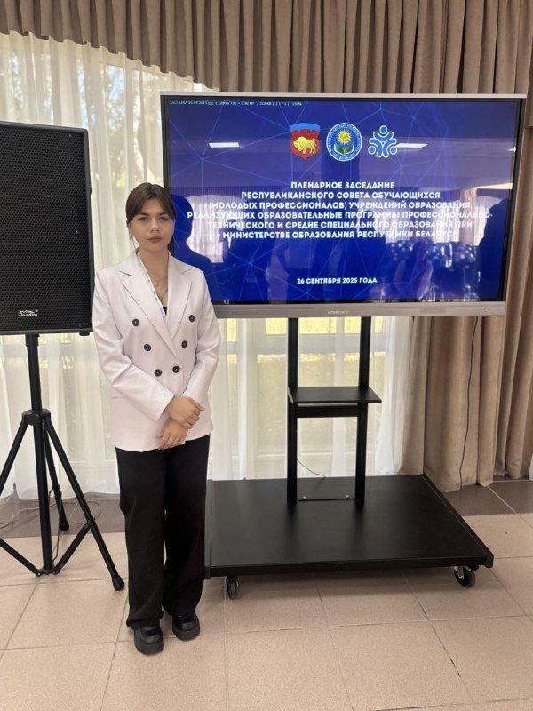 Сегодня состоялось пленарное заседание республиканского совета обучающихся (молодых профессионалов) учреждений образования, реализующих образовательные программы профессионально-технического и средне-специального образования при Министерстве образования Республики Беларусь в городе Бресте. Бобруйский государственный механико-технологический колледж представляла Алёна Евгеньевна Алексашева, учащаяся группы ТМ-3.Пожелаем Алёне успехов и новых возможностей в завтрашнем дне!!