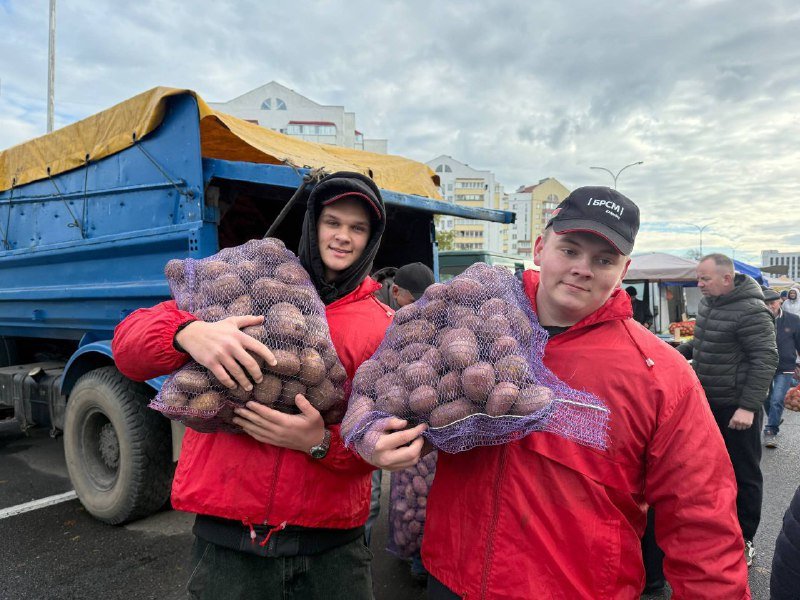 Сильные руки и добрые сердца: активисты БРСМ Первомайского района на сельскохозяйственной ярмарке Волонтеры ГУО «Бобруйский государственный механико-технологический колледж» с радостью помогали покупателям, особенно пожилым людям, погрузить или донести тя